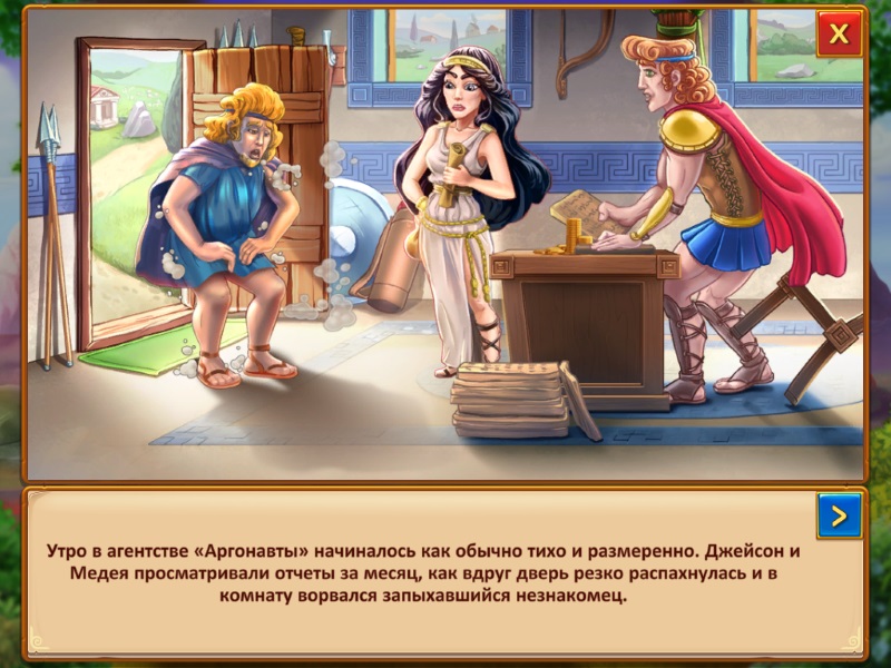 Известный коллекционер Пелий снова добавил массу хлопот сотрудникам агентства "Аргонавты". В офис известных искателей приключений прибыл гонец с просьбой немедленно отправиться в особняк пострадавшего любителя древностей. Прибыв на место событий, аргонавты выяснили, что Пелий попал в беду!