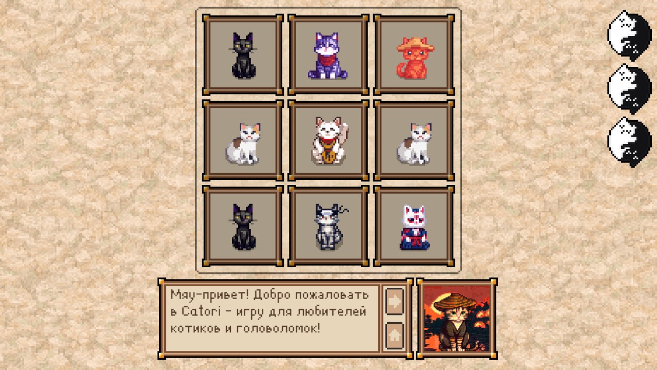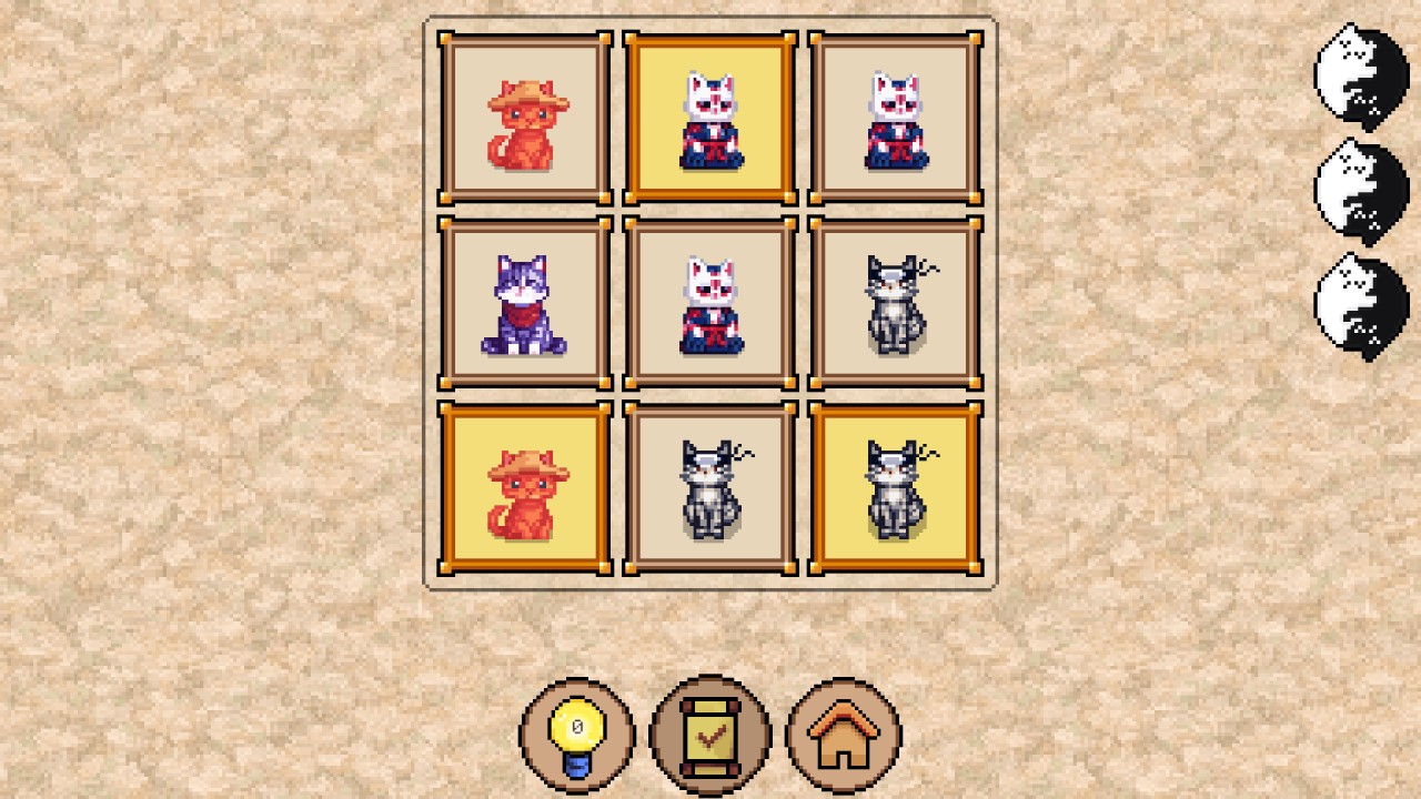 Встречайте уникальный аналог японской головоломки хитори, но с милыми котиками в пиксельном стиле! Ваша цель — тщательно выбирать дополнительных котиков так, чтобы соблюдались основные правила.