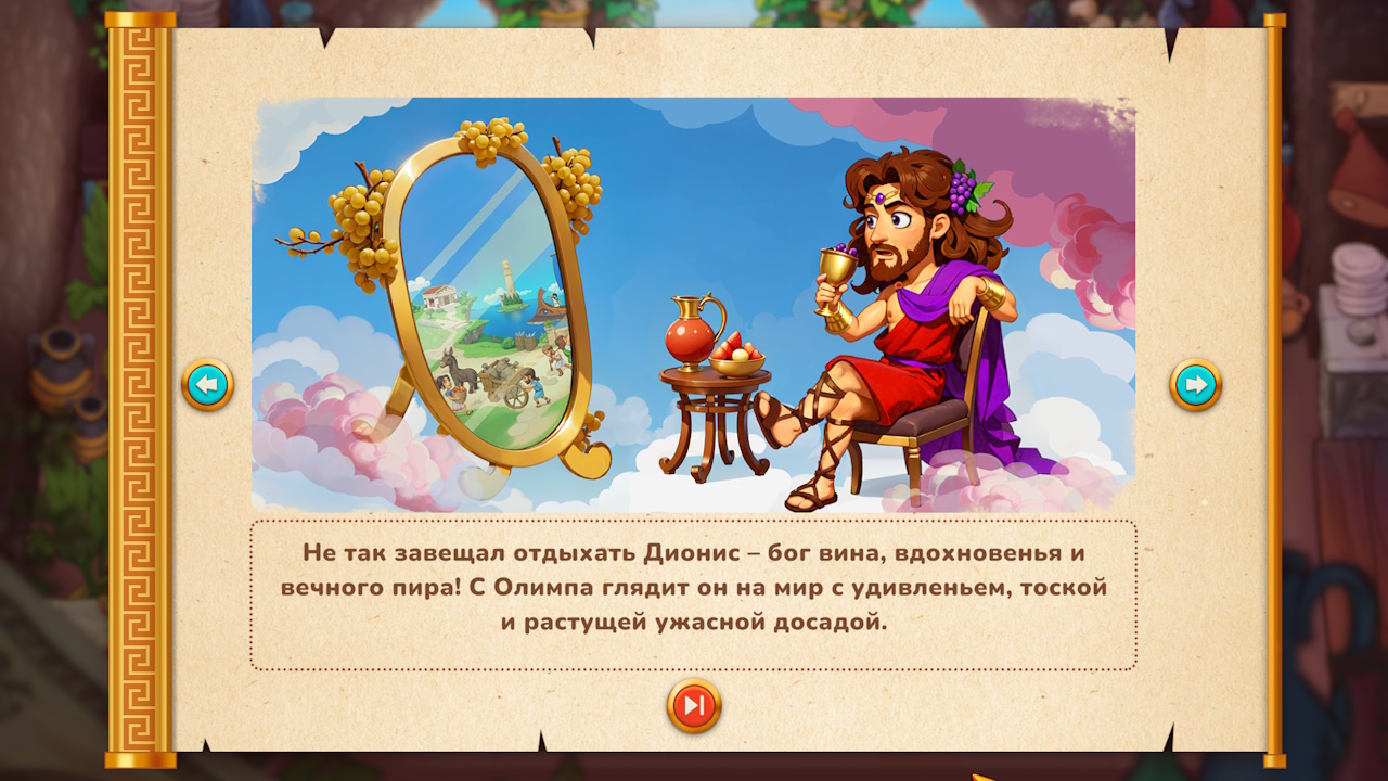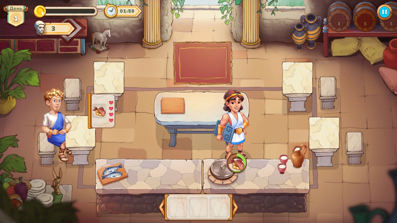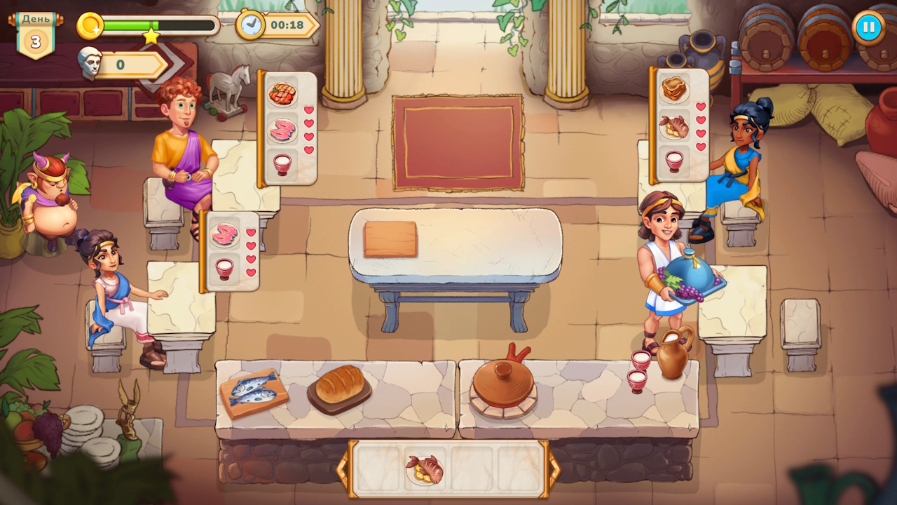 Окунитесь в шумный мир Древней Греции в захватывающей в жанре тайм-менеджмент, где ваши кулинарные навыки и быстрое мышление определят судьбу человечества! Присоединяйтесь к Ираклию в его эпической миссии по спасению своего народа от гнева Диониса, бога виноделия и веселья.